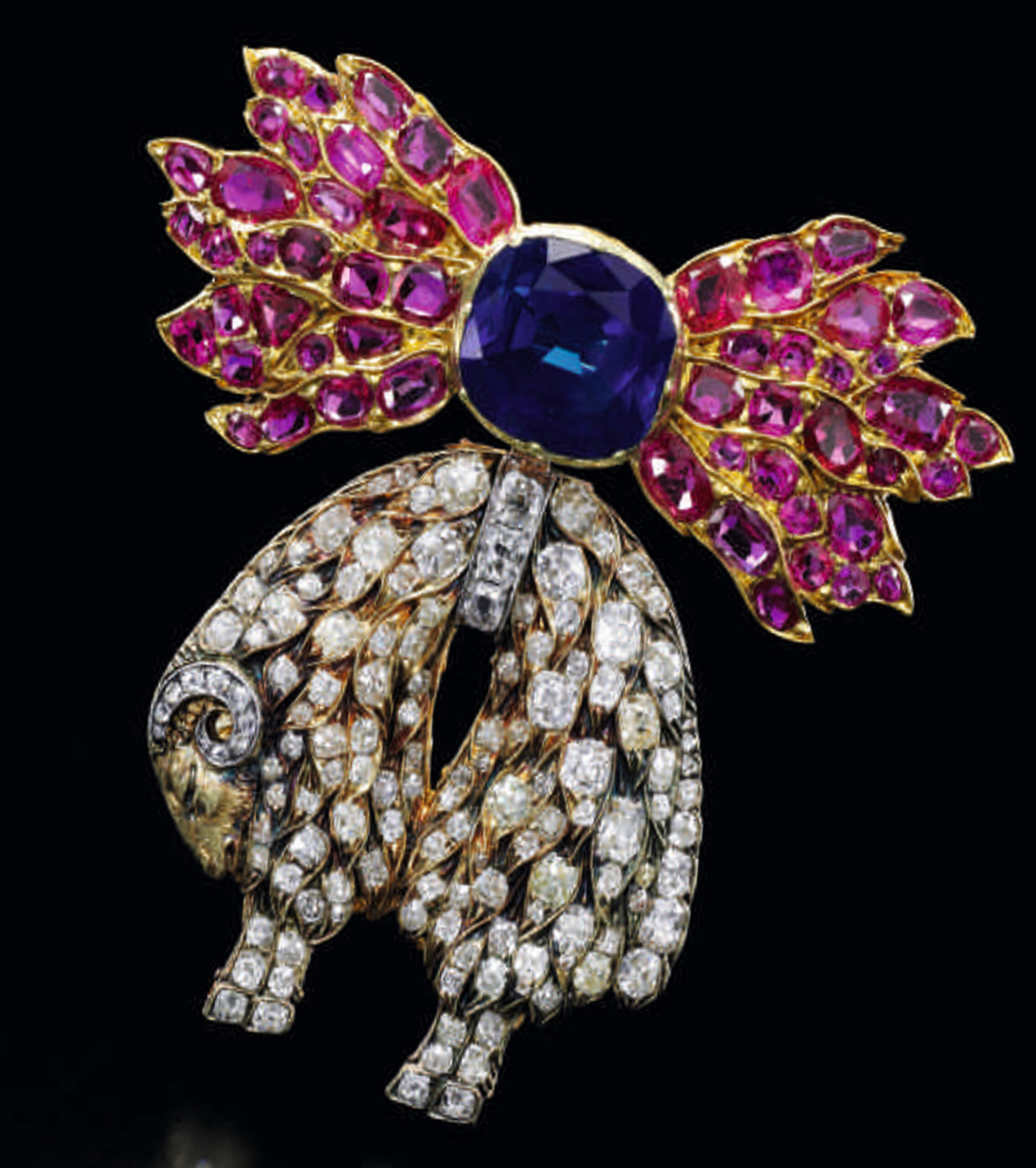 Twenty-six years on from the Thurn und Taxis auction, another important collection of historic jewels was offered at auction in Geneva – Royal Jewels from the Bourbon Parma Family. Through this unique group of important jewels and precious objects European history from the reign of Louis XVI to the fall of the Austro-Hungarian Empire could be traced. Lot 90, above, was a sapphire, ruby and diamond neck badge of the Order of the Golden Fleece, circa 1820, it was owned by Louis-Antoine de Bourbon (1775-1844), Duc d’Angoulême, eldest son of Charles X, and Grand Admiral of France from 1814-1830, he was appointed knight to the Spanish branch of the Order in 1814.