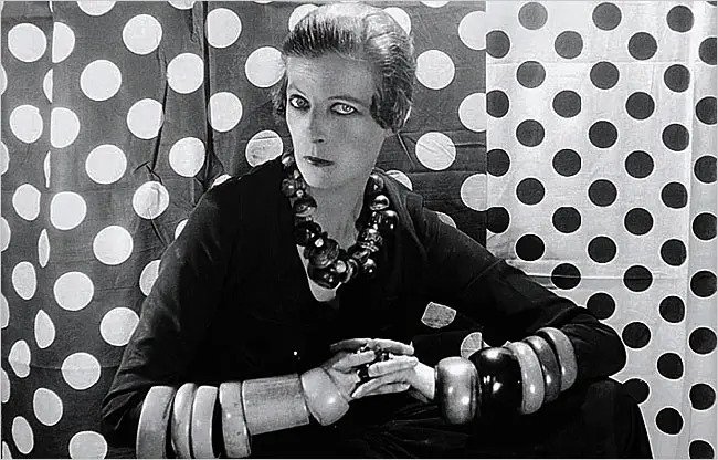 The exhibition helped to promote the desire for simplified jewels, which in essence led to the move towards traditional crafts, which was particularly favoured in the Depressions era of the 1930s. Beads of amber and ivory complemented with multiple bangles of exotic polished woods, lacquer and ivory became highly fashionable accessories for the fashionistas of the period. Cecil Beaton photographed Nancy Cunard, the shipping heiress, embracing the trend. Her arms were bedecked with multiple African bangles, she was known as a devotee of the new ‘barbaric look’ and she collected both African art and artifacts. The look was also popularised by Josephine Baker, who performed an outlandish and erotic ‘danse sauvage’ and captivated audiences with her daring skirt of stringed bananas.