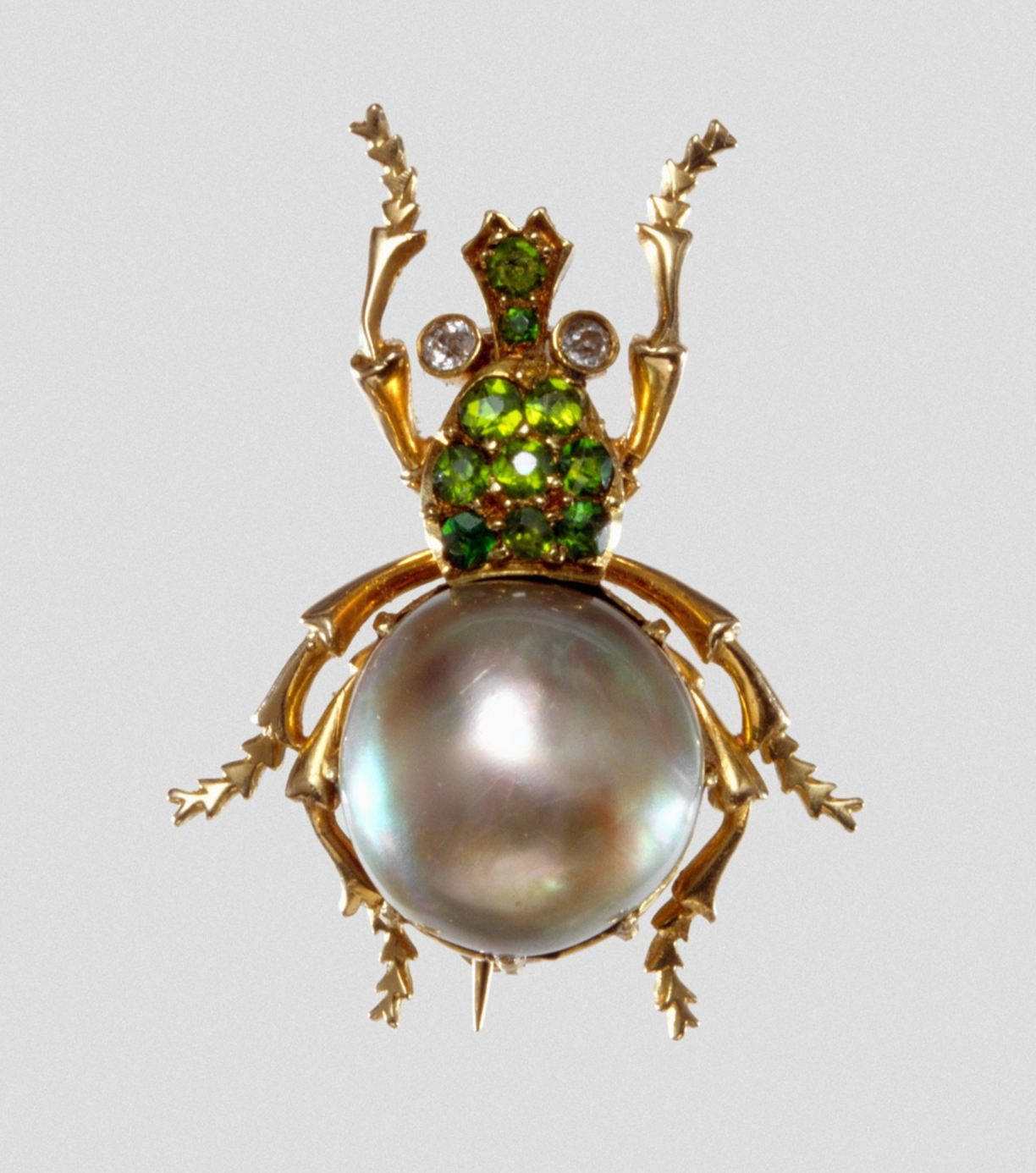 The finest pearls have a good colour and lustre, with a kind of rosy bloom and a skin as near perfect and unblemished as is possible. As one would expect, the higher the colour and lustre of a pearl, the more valuable it is. Pearls are most often seen in white, pink, purple, black, gold and cream, although colours such as champagne, chocolate, blue, green, gold, silver and lavender also exist. Pearls are most often perfectly symmetrical spheres or pear-shaped drops, however, misshapen pearls, termed ‘Baroque’, have also been worn for centuries, although they are of far lesser value. Freshwater pearls, or river pearls, tend to have less lustre and are seen in 19th and early 20th century jewellery. They are notably found on the Tay, Scotland and the Mississippi, in the USA. Natural black pearls tend to come from the areas around the islands of French Polynesia, notably Tahiti, with the most valuable being true black in colour. Most Tahitian pearls are called black, but in reality, they tend to be closer in shade to either charcoal grey, silver or dark green.