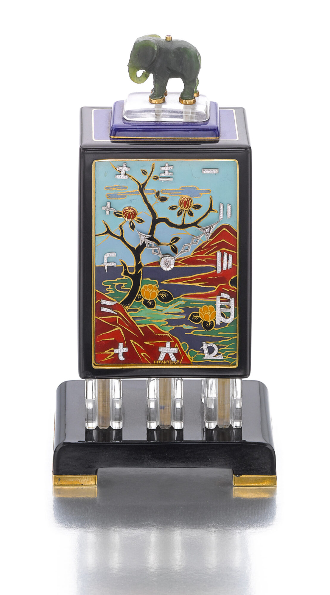 Entitled Precious Art Deco Objects from an Important Private Collection, this exceptional group of 126 items comprises jewelled vanity cases, lighters and cigarette cases by the great Maisons, notably Cartier, Van Cleef & Arpels, Tiffany & Co., Boucheron, Janesich and Lacloche Frères, not forgetting a fine group of seven desk clocks, two of them stunning examples by Tiffany & Co. It also includes several fascinating examples of Art Moderne cases by makers such as Brandt, Dunand, Sandoz and Templier. The sheer range of forms, colours, materials, techniques and makers position this group as a study collection for 20th century jewellery design enthusiasts.
