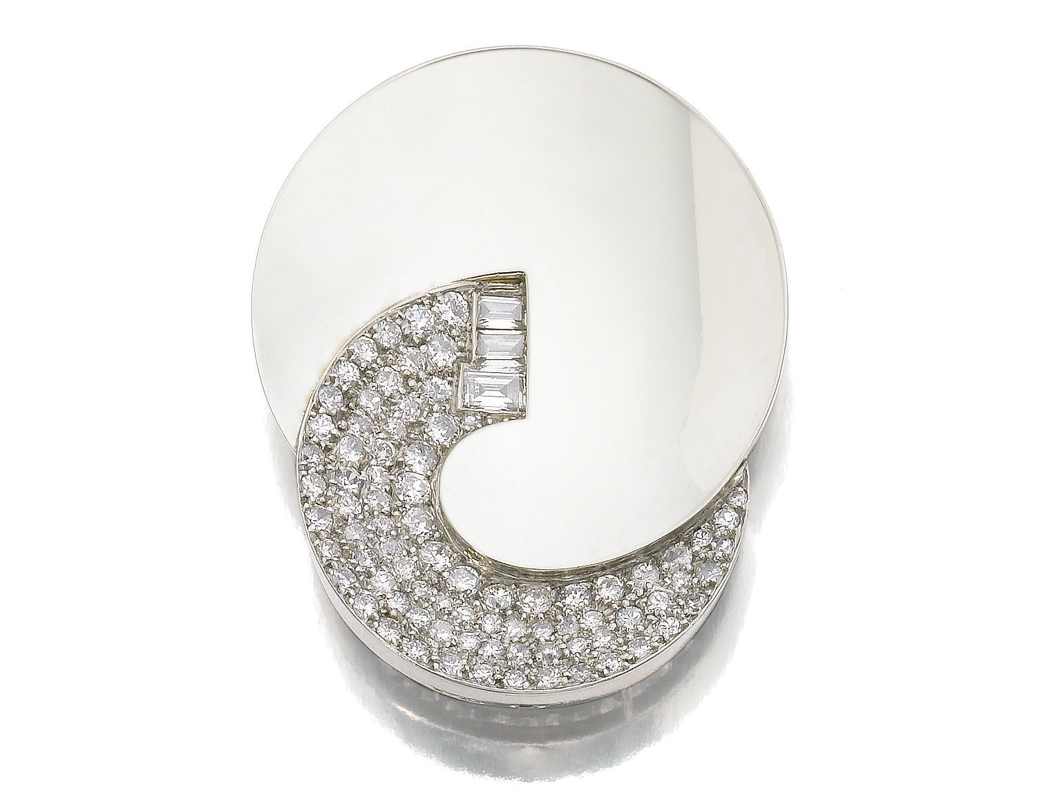 A platinum and diamond clip, Raymond Templier, Paris, circa 1930.